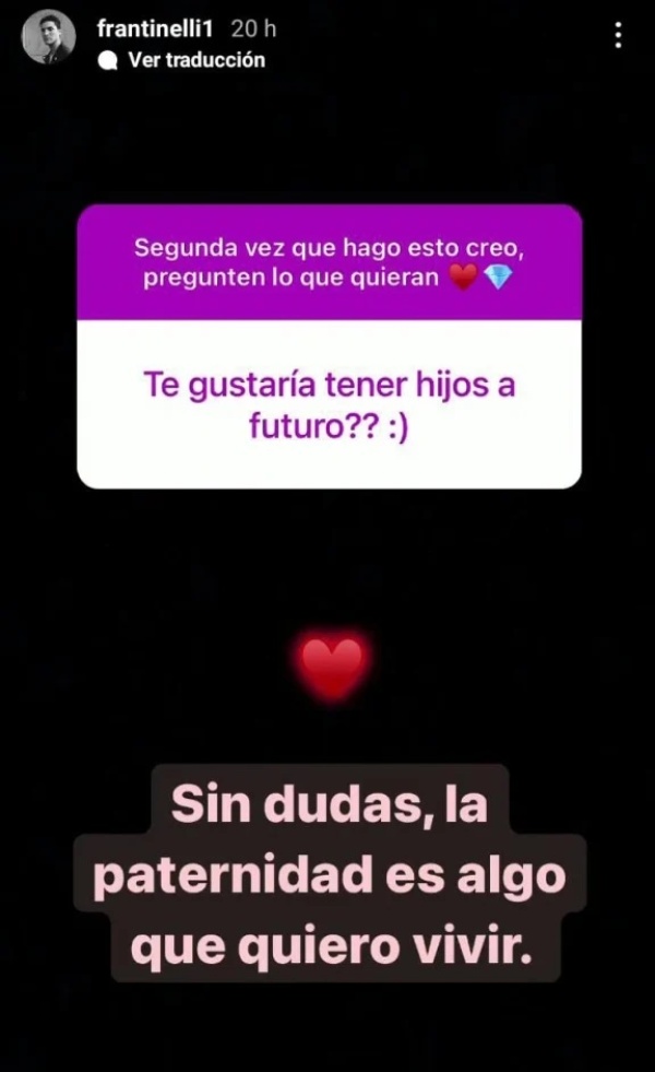 "Sin dudas, la paternidad es algo que quiero vivir", cerró Fran junto al emoji de corazón.