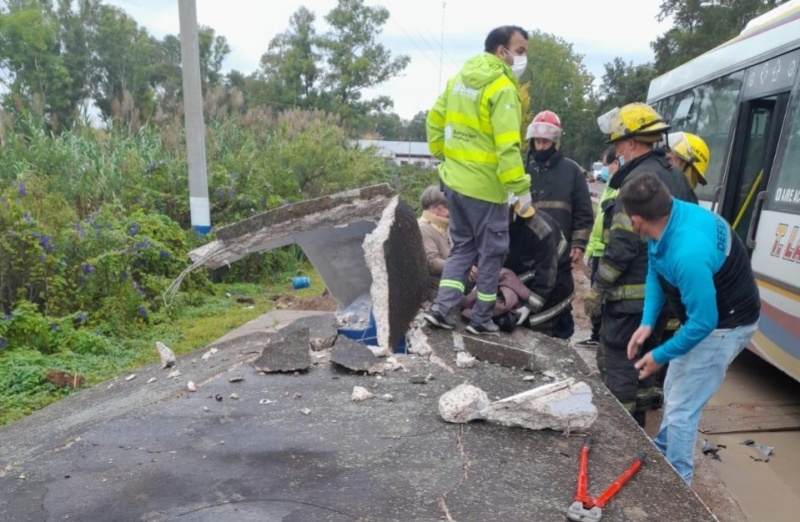 Según informaron, la mujer de 52 años que se encontraba en el refugio quedó atrapada y fue rescatada por los equipos de emergencias y derivada al Hospital Larrain con politraumatismos y contusiones varias aunque fuera de peligro.