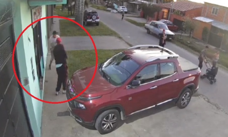 Todo sucedió la semana pasada en la calle 163 bis y 62 y todo quedó grabado por las cámaras de seguridad de una casa lindera a donde pasó todo. Allí se puede observar cómo la víctima espera en la vereda a que le abran, y se aproximan los hmobres en moto.