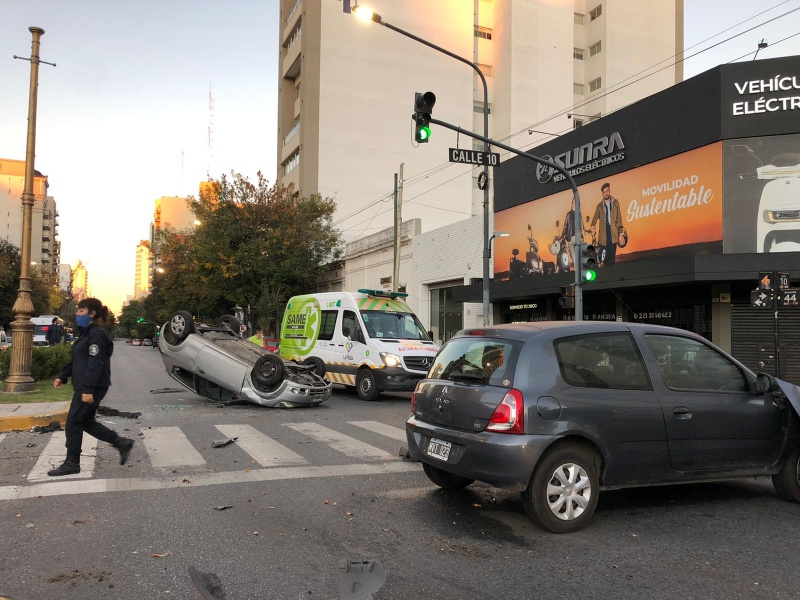 Alrededor de las 6.30 se produjo un choque en la esquina de 10 y 44 entre dos vehículos. Uno de ellos terminó volcado.