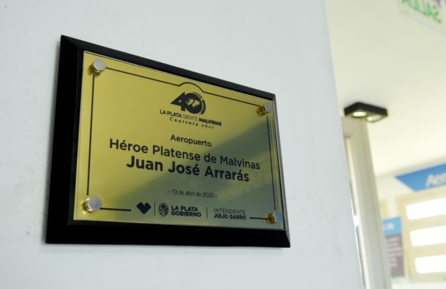 Tras un acto organizado por la Municipalidad de La Plata, a partir de hoy el aeropuerto de la República de los Niños pasó a denominarse ‘Héroe platense de Malvinas Juan José Arrarás’, en homenaje al piloto de la Fuerza Aérea Argentina que murió en combate el 8 de junio de 1982.