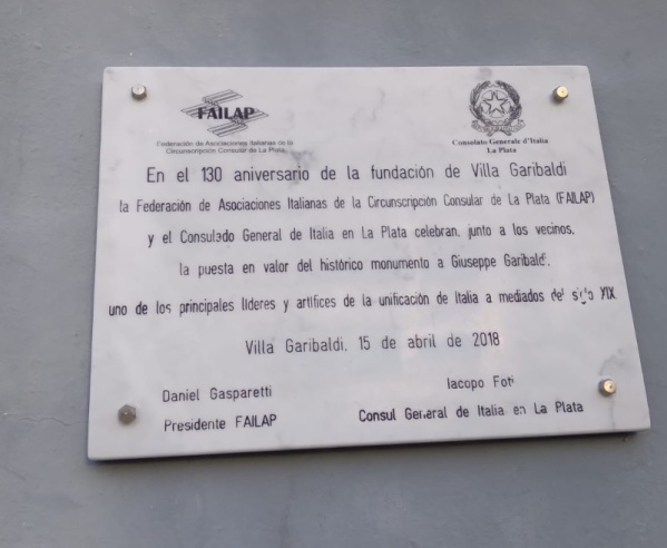 En abril de 1888 se inauguró el Monumento a Garibaldi (calles 11 y 661), obra de Abraham Giovanola. Se trata de una estatua de cemento de 7 metros de altura, que en la actualidad se encuentra restaurado. A sus pies se instalaron dos fuentes y lindando con el lugar una capilla de madera. De las fuentes y la capilla ya no quedan rastros.