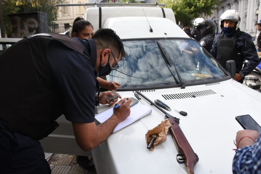 Fuentes policiales le confesaron a este medio que una vez que se logró reducir al delincuente, se encontraron en su poder un cuchillo y una navaja. Además en ese momento el hombre empezó a decir que venían viajando hace tres días de Neuquen y que su objetivo era "matar a Cristina Kirchner y otros funcionarios".