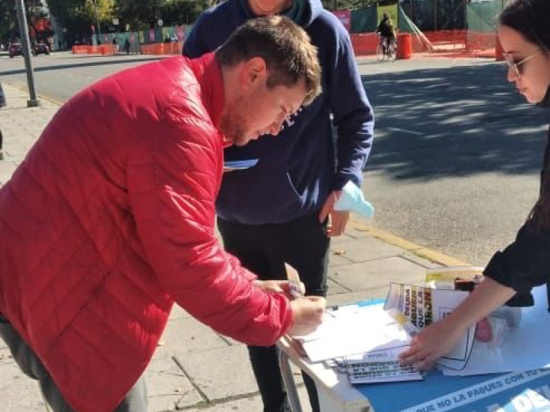 Militantes del oficialismo, con La Cámpora a la cabeza, realizaron una jornada de junta de firmas que tiene como objetivo principal apoyar el proyecto de Cristina Fernández de Kirchner para que la deuda con el FMI se pague con el dinero fugado.