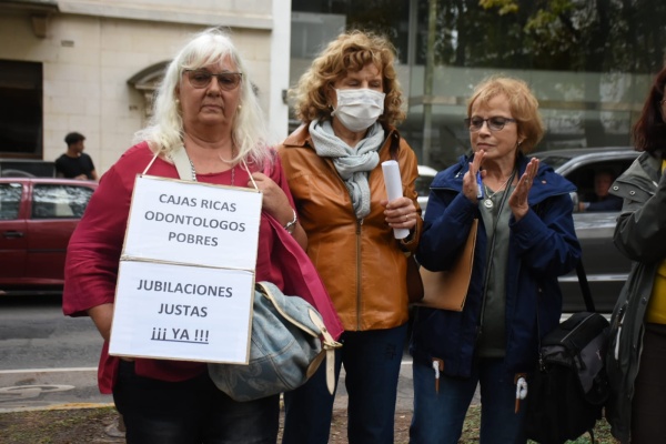 Desde la organización OELA (Odontólogos en Lucha) llevan a cabo una protesta frente a la legislatura bonaerense. Rechazan la presentación de un proyecto que modifica el sistema previsional del sector.
