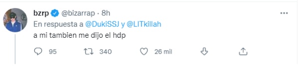 Tal es el caso de Duki, que en las últimas horas compartió un mensaje en su cuenta de Twitter dando a entender que podría hacer una colaboración con Bizarrap: