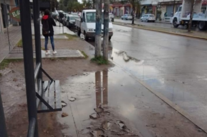 Entre agua y veredas rotas. Así lo muestran quienes viven en la zona de Olmos, en especial los días de lluvia, algo que ya "no soportan".