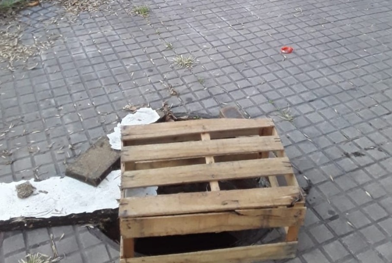Aseguran que en esa zona transitan muchos chicos ya que funciona un Jardín y una escuela secundaria. “Es un terrible peligro”, alertaron. Momentáneamente colocaron un cajón de madera para prevenir accidentes.
