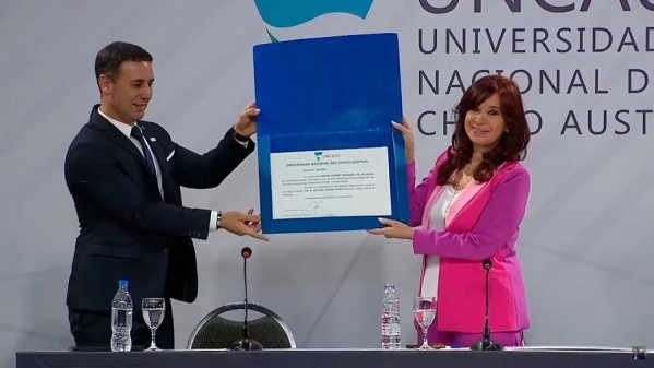 En una conferencia de prensa realizada días atrás, el rector de la Uncaus, Germán Oestmann, y el vicerrector, Manuel García Sola, dijeron que el Consejo Superior de la universidad resolvió por unanimidad condecorar a la expresidenta de la Nación con su máxima distinción académica, el Doctorado Honoris Causa.