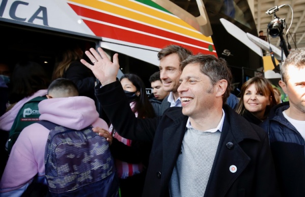 El gobernador de la provincia de Buenos Aires, Axel Kicillof, asistió esta mañana a la despedida de cerca de 300 estudiantes de escuelas de Merlo que viajan a la ciudad de Mar del Plata en el marco del programa Viaje de Fin de Curso. Fue en la terminal de ómnibus de Morón, junto al ministro de Producción, Ciencia e Innovación Tecnológica, Augusto Costa; y el intendente local, Lucas Ghi.