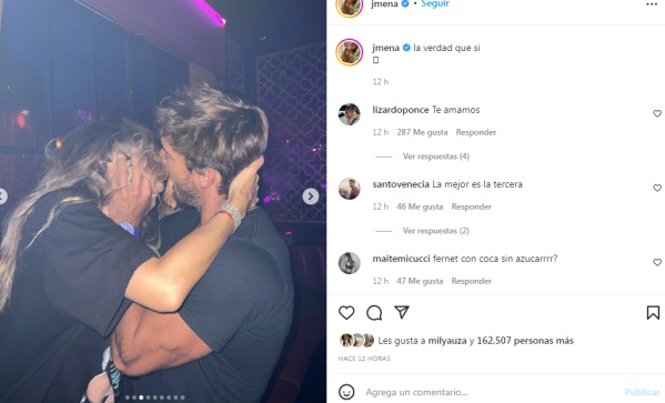 Entre las postales que les compartió a sus seguidores de Instagram, se observa una muy particular: el "chape" hot a su novio Matías Palleiro con quien se reencontró luego de varios días ya que él se encontraba de viaje.