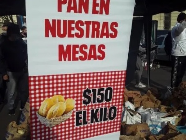 La protesta comenzó a las 10 en la estación de trenes de Retiro, donde el kilo de pan se vendía a 150 pesos, con la presencia del secretario general de la CTA y diputado del Frente de Todos (FdT) Hugo Yasky.