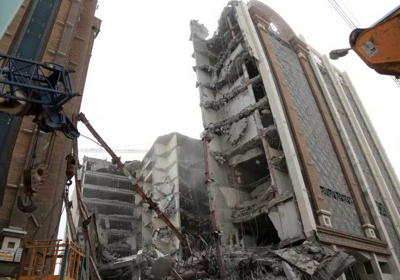 El edificio Metropol, de diez pisos, colapsó parcialmente el pasado lunes en Abadan, provincia de Jozestán, en el suroeste de Irán.