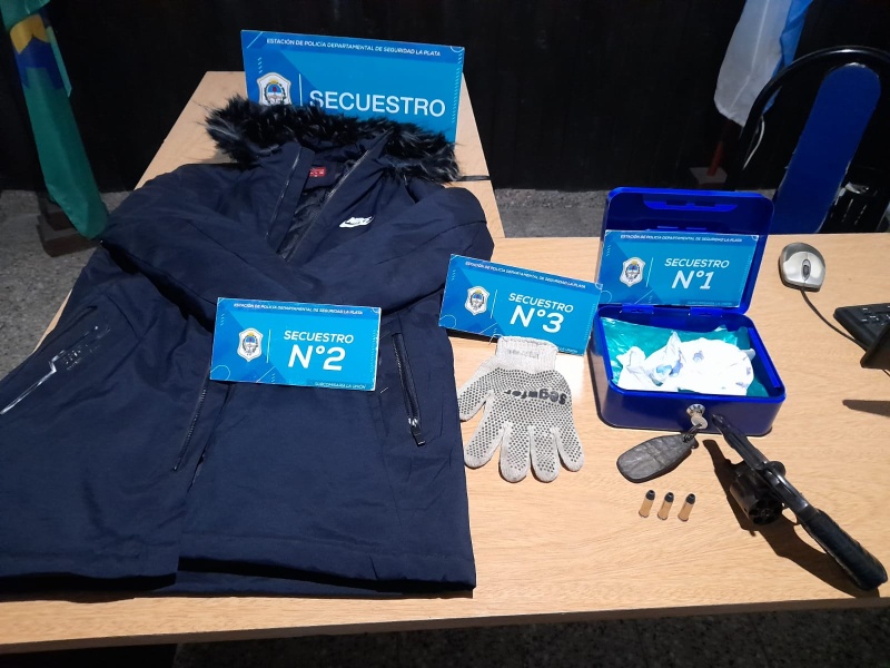 En el procedimiento, la policía secuestró un revólver calibre 38, una campera y guantes usadas en el escruche, y un auto usado también en ese robo y en otro ilícito desarrollado en otra jurisdicción.