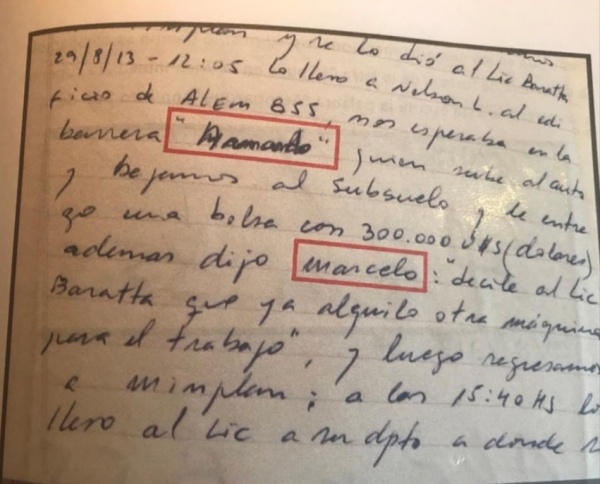 Entre los justificativos, explican que se encuentra el nombre "Armando" de manera sospechosa. "¿Se modificaron esos nombres (Marcelo por Armando) para hacerme aparecer, o poder adjudicar e imputarme la comisión de más hechos?", se preguntó Loson en la denuncia que formuló el 1 de abril pasado a través de su abogado Carlos Vela. El empresario siempre dijo que las entregas de dinero que realizó fueron de su patrimonio para campañas electorales.