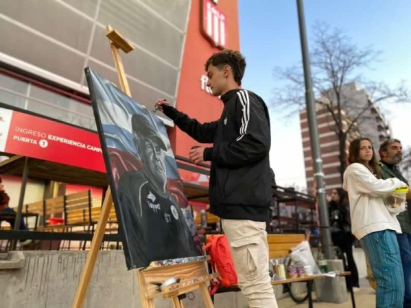 Esta semana vivió un momento muy especial. Convocado por el Colectivo Cultural de Alejandro Sabella, formó parte de una jornada multicultural en UNO. No era la primera vez que pisaba fuerte en el Estadio. Ya en marzo había hecho un cuadro en la muestra de Bilardo. Pero ahora lo hizo en vivo y en directo. Tardó casi 7 horas.
