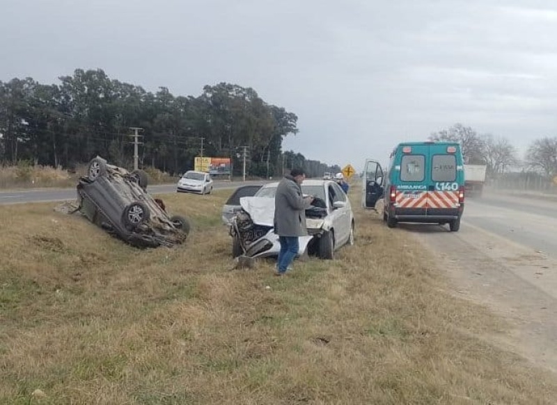 Un accidente con vuelco tuvo lugar en la Ruta Nacional 2 en el kilómetro 56, a la altura de Echeverry. El mismo fue durante horas del mediodía y tuvo que intervenir efectivos policiales y personal del SAME.