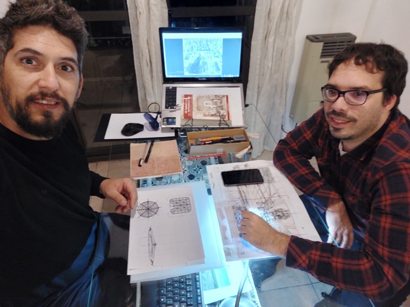 Ahora el arte los volvió a juntar. Y justamente para el próximo libro de Gabriel. El arquitecto fue convocado junto a otros ilustradores para formar parte de este ambicioso proyecto. Y no dudó. Lleva tres meses a prueba y error con su objetivo: la Ciudad de La Plata de la década del 90.
