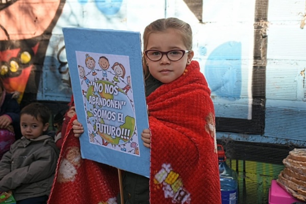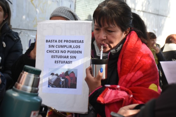 En diálogo con LAPLATA1.com, algunas mamás organizadas comentaron: "Somos diez escuelas implicadas. En el Normal 2 por ejemplo, hay tres aulas donde los chicos se van rotando para no pasar tanto frío".