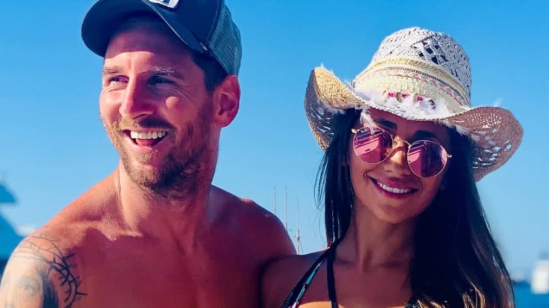 En esta ocasión, la esposa de Lionel Messi combinó su look a la perfección con su accesorio: un sombrero estilo cowboy -el complemento de playa que es furor entre las amantes de la moda- en color beige y con un lazo floreado de colores.