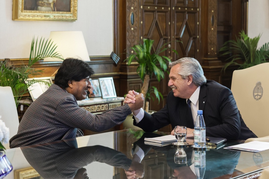El presidente Alberto Fernández compartió este martes un almuerzo en la Casa Rosada con el exmandatario de Bolivia Evo Morales, durante el cual ambos intercambiaron opiniones sobre la actualidad en la región, en el marco del Día de la Confraternidad Argentino Boliviana, fecha en la que ambas naciones conmemoran el natalicio de la generala Juana Azurduy, heroína de la independencia latinoamericana.