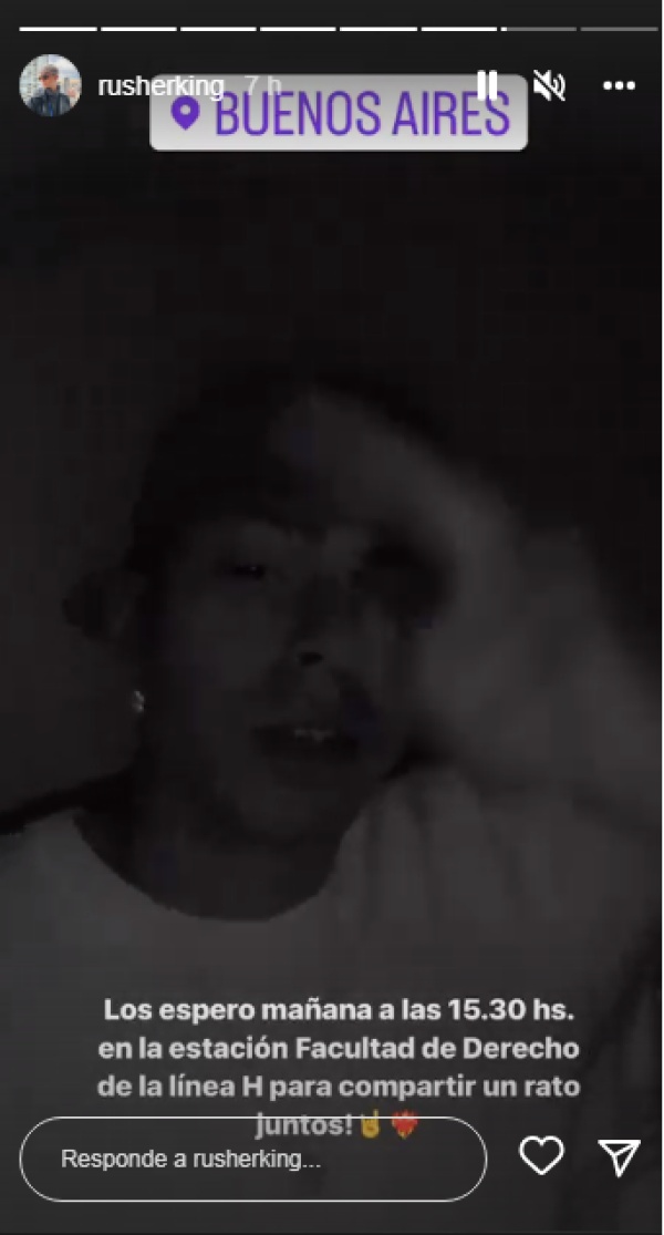 "Los espero mañana a las 15.30 hs en la Estación Facultad de Derecho de la línea H para compartir un rato juntos", expresó.
