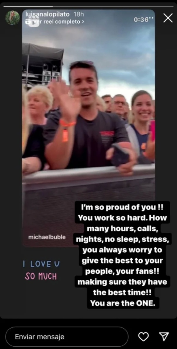 "Estoy tan orgullosa de vos, trabajás tan duro. Cuántas horas, llamadas, noches sin dormir, estresado; siempre te preocupás por darle lo mejor a tu gente... Tus fans".