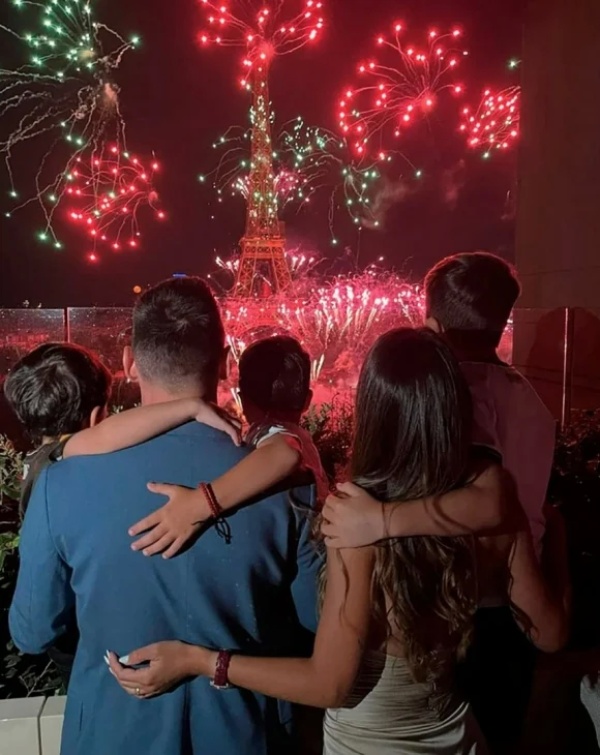 A la familia se la puede ver en medio de la noche mientras disfrutaban de los espectaculares fuegos artificiales.