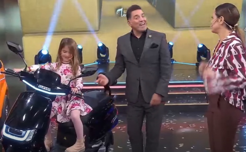 Pero al finalizar el programa, la actriz vivió un tenso momento al aire cuando la niña, ya subida a la moto para la cual el conductor iba a hacer un PNT, la arrancó y se desplazó sola por el estudio.