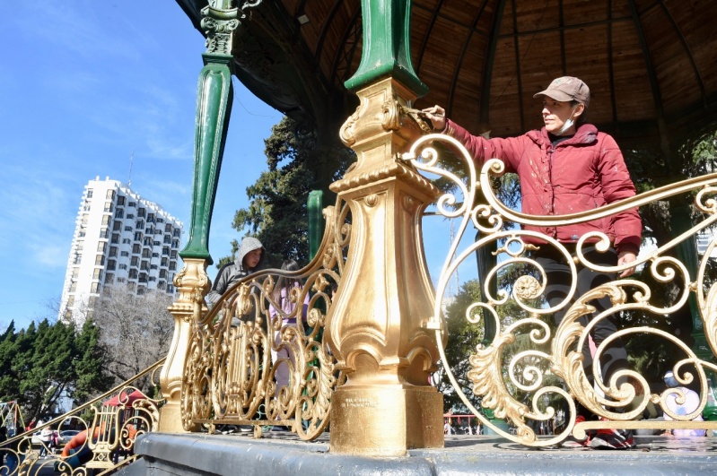 Por otro lado, para devolverle el esplendor que supo tener décadas atrás, también se encuentra en restauración la Glorieta de Plaza San Martin, proceso que incluirá tareas de limpieza manual y mecánica, albañilería, pintura, pátina, entre otras.