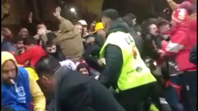 En la avalancha y los tumultos que se observan, hay algunas corridas, insultos y a la vez golpes entre los propios hinchas. Los agentes de seguridad y prevención intentan contener a la masa, pero ésta, embravecida, no detiene la ola y avanza. Algunos simpatizantes intentaron moderar o separar, incluso evitando que corran algún riesgo personas indefensas.