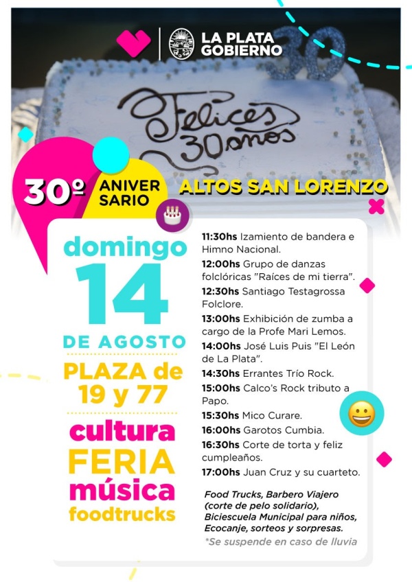 Tras el acto oficial que se realizó el miércoles 10 de agosto en la delegación de 25 y 75 para conmemorar el aniversario de este barrio, la Municipalidad de La Plata organizó para el domingo distintas actividades para el disfrute de las familias.