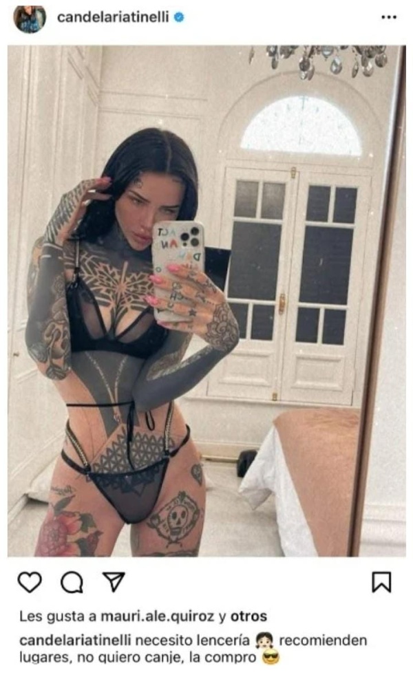 Candelaria Tinelli impactó a sus fans con una selfie en ropa interior, tras haberse cruzado muy fuerte con una seguidora que criticó su aspecto físico.