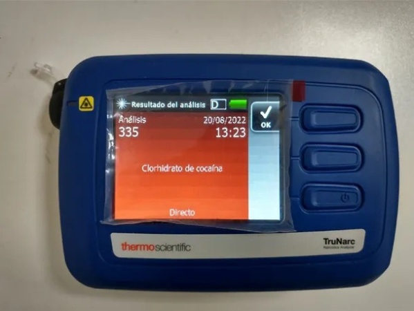 Como si fuera una escena de Alerta Aeropuerto, cuando abrieron las valijas los efectivos detectaron dobles fondos en las tapas de cada una, simulando el color y la forma. Al examinar el interior hallaron un polvo blanquecino, que sometido a reactivo químico para clorhidrato de cocaína dio positivo, arrojando un peso total de 24,3 kg con los elementos contenedores.