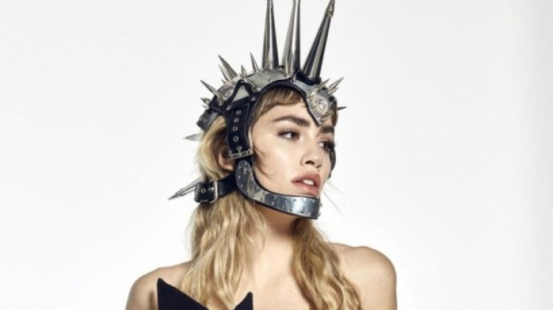 La cantante se tatuó el logo de su último disco, una especie de casco con llamativas puntas.