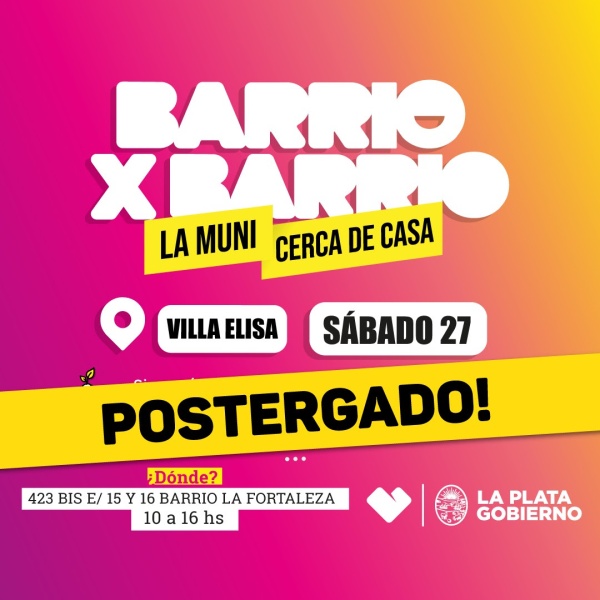 Luego de establecer el Nivel Alerta Amarillo por tormentas de variada intensidad, se decidió suspender la edición del programa "Barrio x Barrio" prevista para mañana en Villa Elisa.