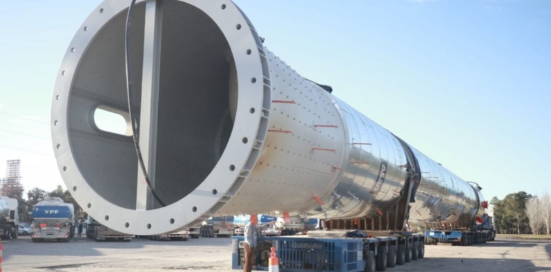 Este sábado se realizó el cuarto y último traslado de la Torre Splitter de 56 metros de largo, 4,9 metros de diámetro y 90 toneladas El mismo fue recibido en el Complejo Industrial La Plata de YPF y fue enviado desde la localidad de Canning.