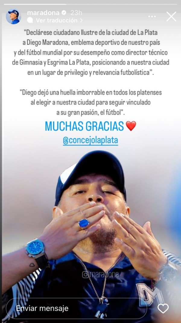 En este sentido, la familia Maradona agradeció a través de las redes el reconocimiento a una de las personas más influyentes del país, quien marcó a varias generaciones con su fútbol y su vida particular. Lo hicieron por medio de la cuenta de Instagram de Diego, que continúa activa gracias a sus hijos e hijas.