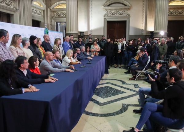La conferencia estuvo encabezada por la Presidenta del Senado Bonaerense, Veronica Magario; el Presidente de la Honorable Cámara de Diputados de la Provincia de Buenos Aires, Federico Otermin; el Presidente de Bloque de Diputados, Cesar Valicenti y la Presidenta de bloque de Senadores, Teresa García.