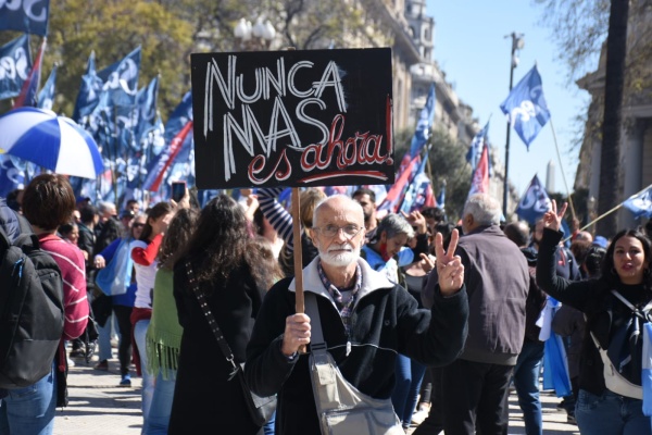 En tanto, en la Plaza de Mayo ya se congregaban el Sindicato de Prensa de Buenos Aires (SiPreBA), La Garganta Poderosa, La Bancaria y el Sindicato de Mecánicos y Afines del Transporte Automotor (Smata).