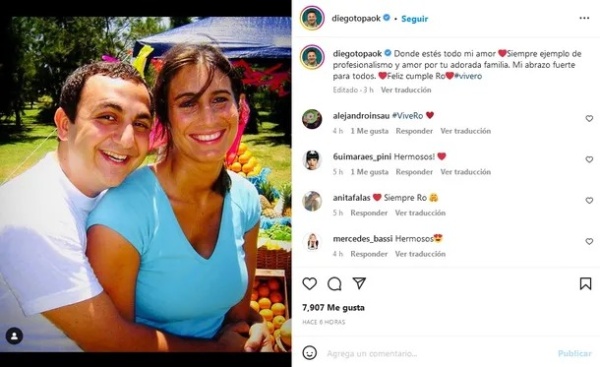 El animador infantil Diego Topa se sumó a los homenajes: “Donde estés, todo mi amor. Siempre fuiste un ejemplo de profesionalismo y amor por tu adorada familia. Mi abrazo fuerte para todos. Feliz cumple, Ro”.