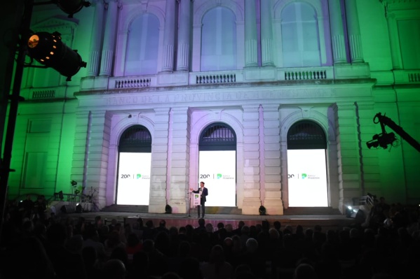 El gobernador Axel Kicillof y el presidente del Banco Provincia (Bapro), Juan Cuattromo, encabezaron durante esta tarde el acto de celebración del bicentenario de la entidad crediticia bonaerense en la Casa Matriz ubicada en La Plata.