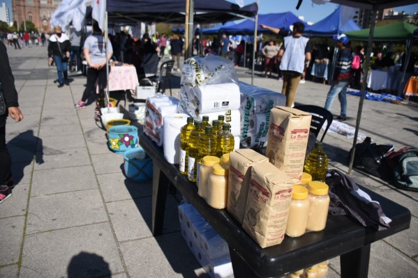 En una nueva jornada de lucha y organización, productores locales se reunieron en Plaza Moreno en el marco de un "feriazo de la economía popular". Las y los manifestantes centralizaron varios pedidos en el lugar.