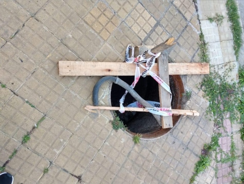 La preocupación es por el peligro de sufrir una caída dentro del pozo que se encuentra, por esta razón es que los vecinos decidieron señalizarlo con maderas y cintas.
