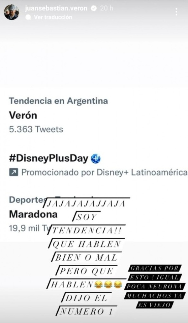 En primer lugar, durante las horas posteriores a la muerte de Isabel, la "Brujita" utilizó su cuenta de Instagram para tomarse con gracias los distintos comentarios que lo convirtieron en viral. "Jajajaja soy tendencia. Que hablen, bien o mal, pero que hablen, dijo el número 1. Gracias por esto. Igual, poca neurona muchachos, ya es viejo", afirmó el vicepresidente, con una serie de emojis risueños, mediante una captura con los diversos hasthags de Twitter.
