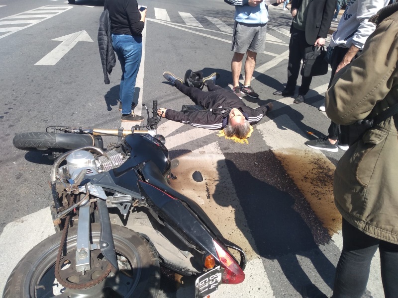 Según indicaron los testigos, el choque se habría dado luego de que la moto impactara contra la Partner, que siguió con su viaje pese al choque, motivo por el cual el hombre de unos 50 años aproximadamente, resultó herido y quedó tendido en el piso.