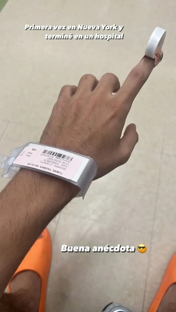 Durante el viaje soñado de la pareja, Rusherking se llevó un gran susto al sufrir un accidente. A través de su Instagram, el músico mostró una de sus manos con un dedo vendado y una pulsera del centro de salud y escribió: “Primera vez en Nueva York y terminé en un hospital.”