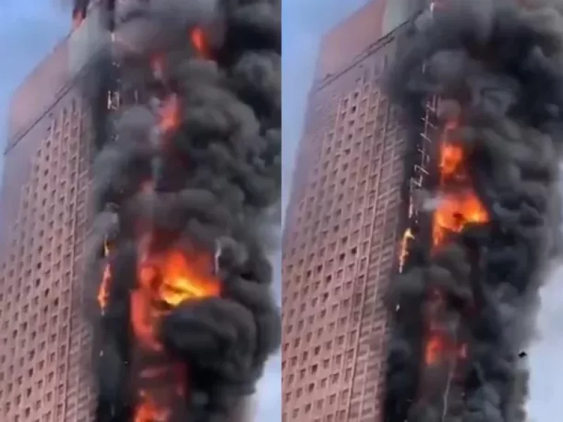 Docenas de pisos del edificio de China Telecom, “se quemaron con gran intensidad”, informó la emisora estatal CCTV.
