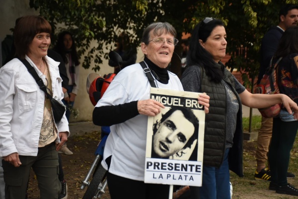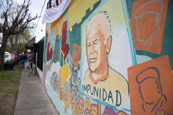 "Este día sentimos lo mismo que sentimos los 364 días anteriores, este mural refleja lo que sentimos, el compromiso de mi viejo, lo que fue el barrio de Los Hornos cuando él vino a vivir, refleja su unidad básica, el compromiso de lucha, su declaración, la silla vacía y su simbolismo, y tengo una réplica que nos regalaron y que es tal cual como aquella silla en la que mi viejo se sentó el día que declaró y este compromiso que él tuvo, es lo que tenemos hoy", señaló Rubén, hijo de Julio López.