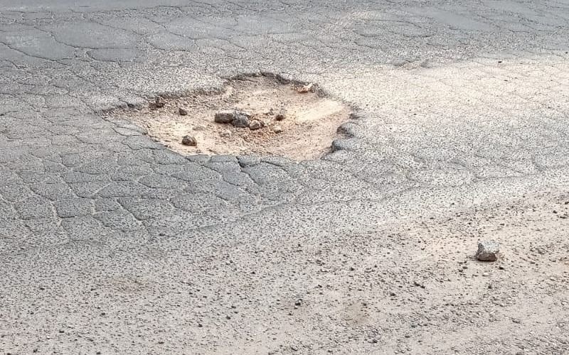 Según informaron los propios vecinos, y tal como puede observarse en la foto, pidieron por el estado de la calle 61 entre 134 y 135, donde hay un gran pozo que hace que salten piedras a las veredas cuando circulan los autos.